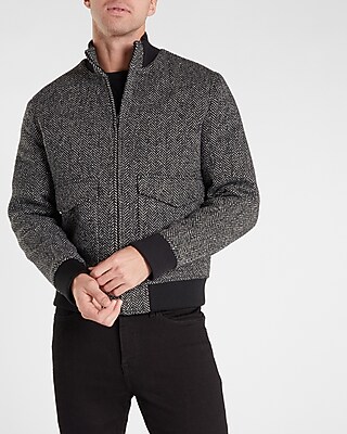 Black Herringbone Wool Blend Bomber Jacket Express